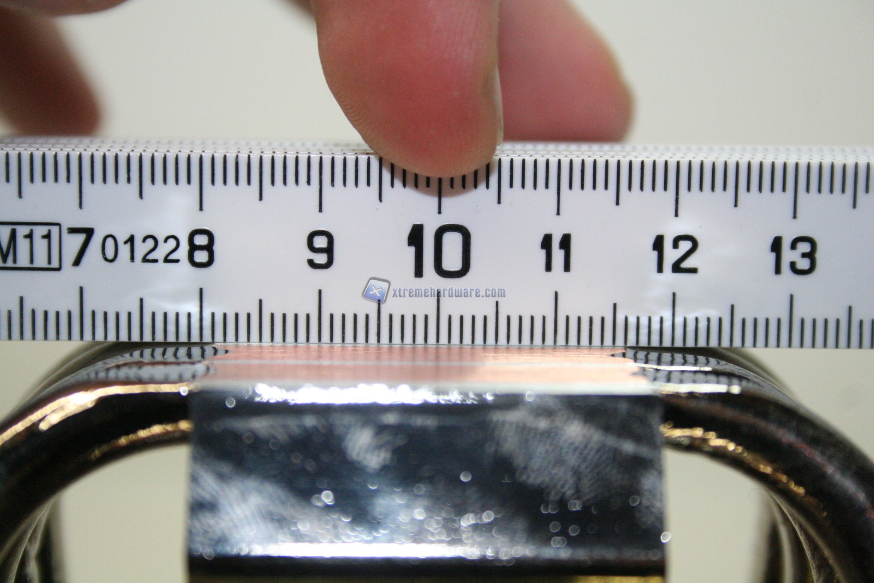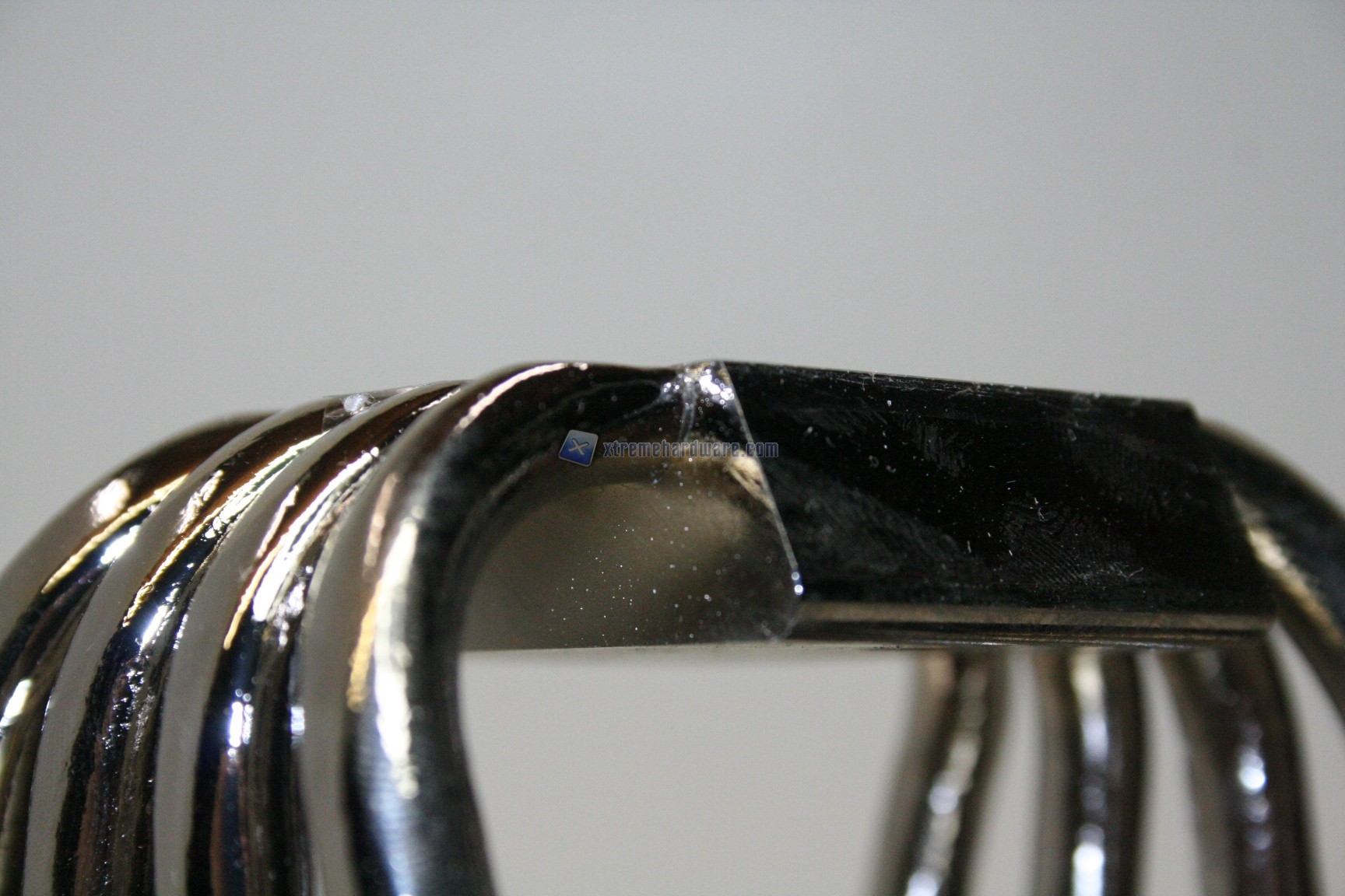 La base presenta quindi un contatto diretto CDC ed è perfettamente planare. E’ di buona qualità, non è ovviamente lappata a specchio, anche se sono presenti i segni della lavorazione industriale. Le saldature sulle heatpipes sono di buona fattura. La base convessa non è consigliabile sul socket LGA 2011, in quanto il problema della deformazione a “banana” del socket non è più presente, al contrario del sistema 1155-56/1366, dove invece un minimo di convessità è consigliata. In questo caso renderà meglio su socket tipo 2011.