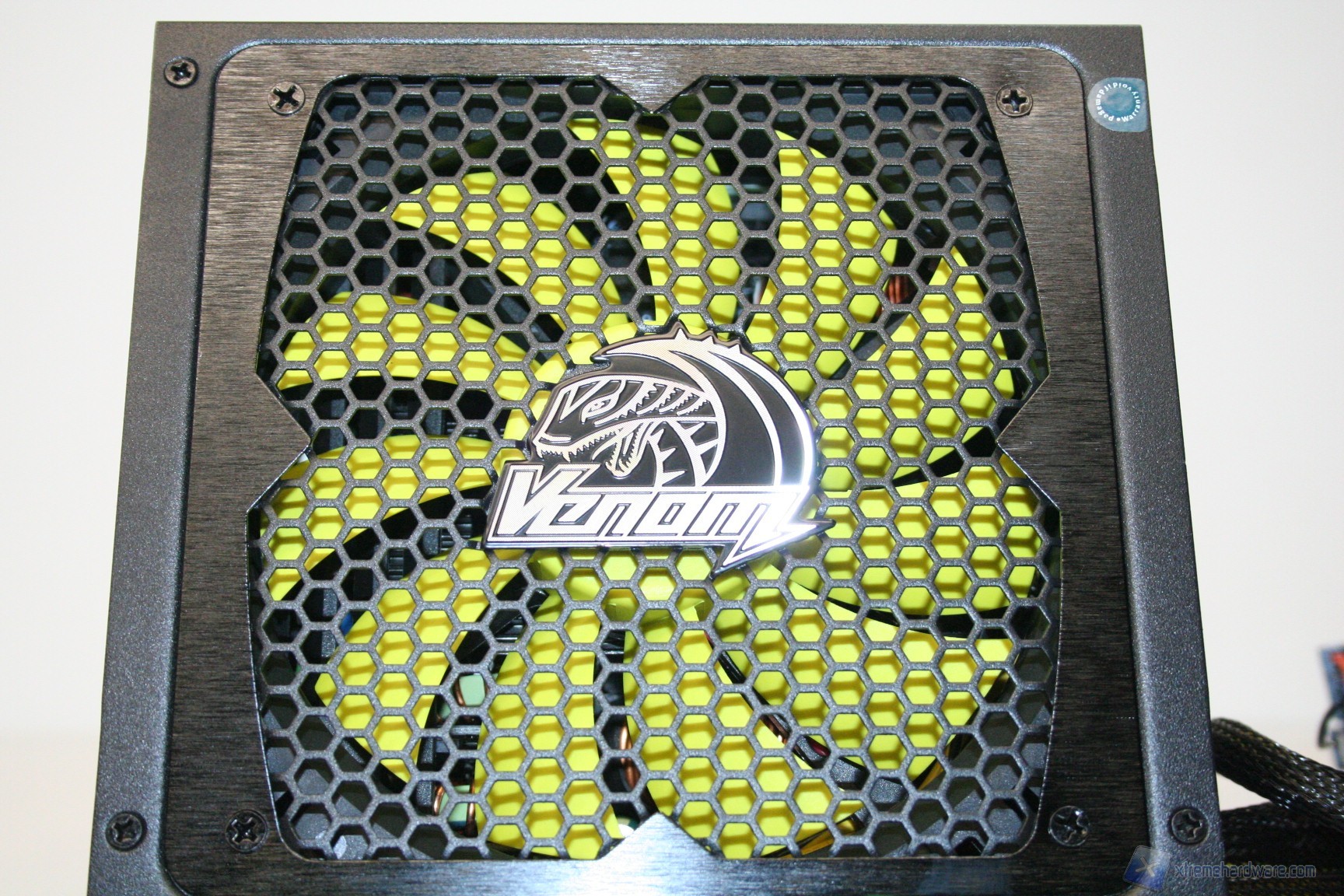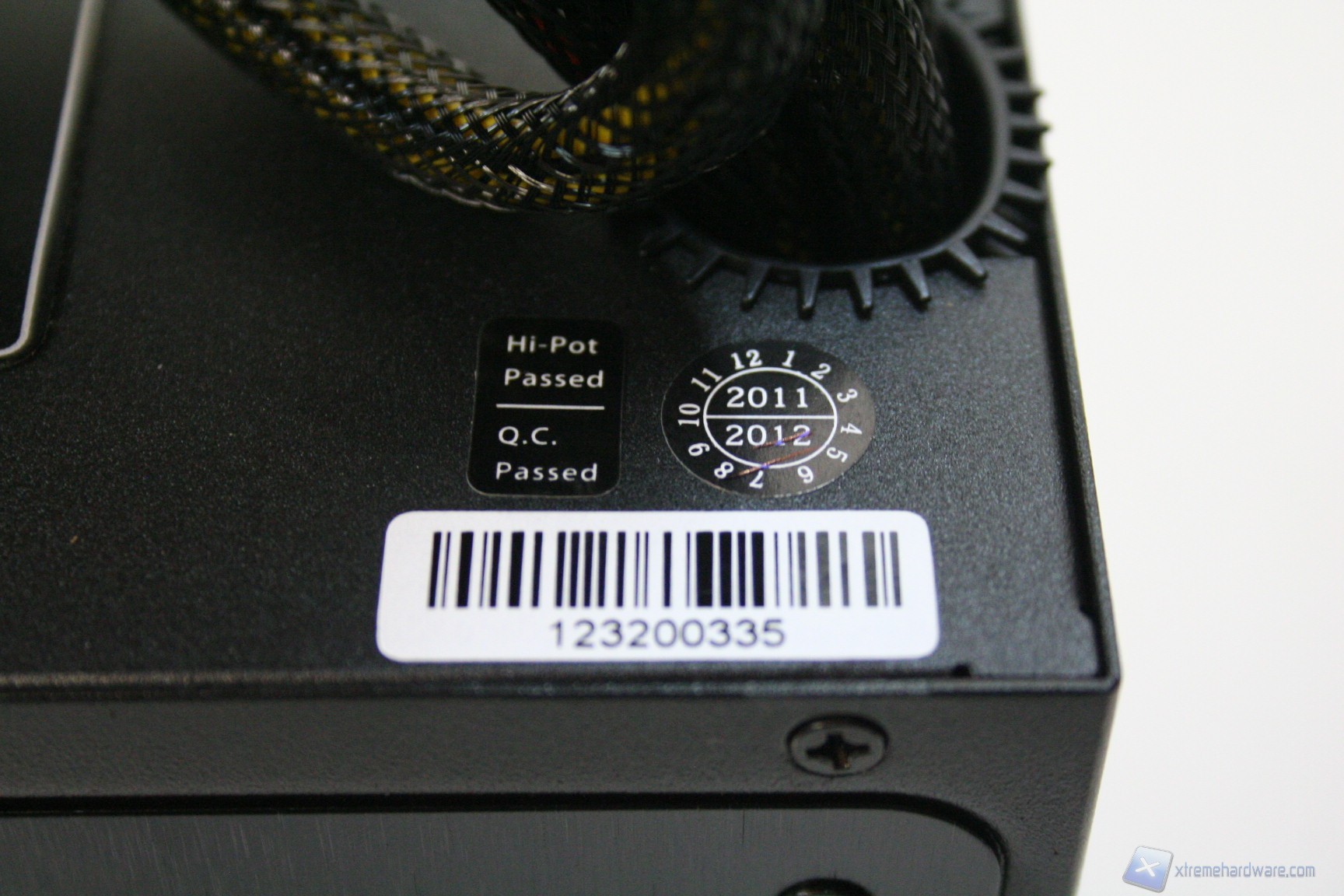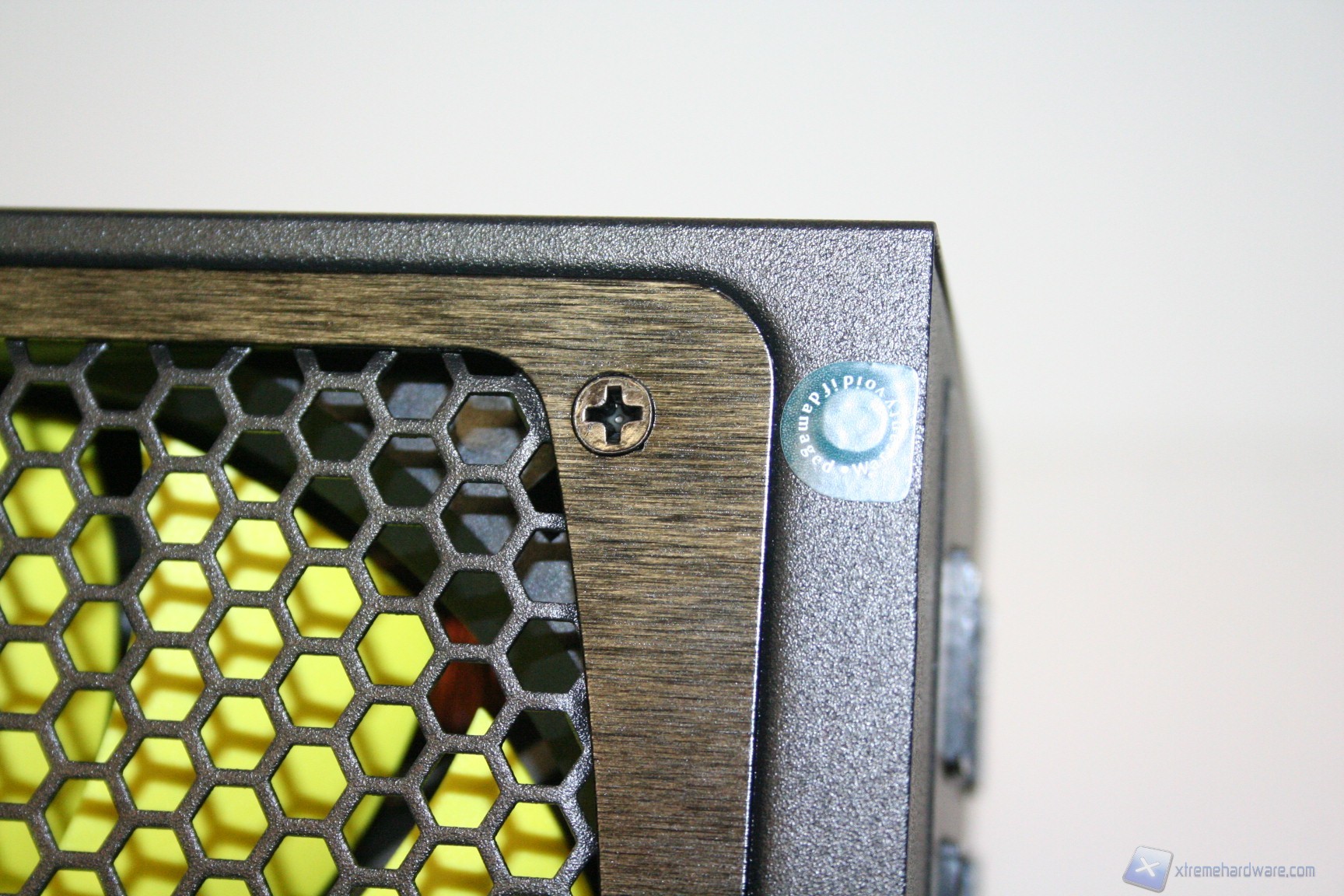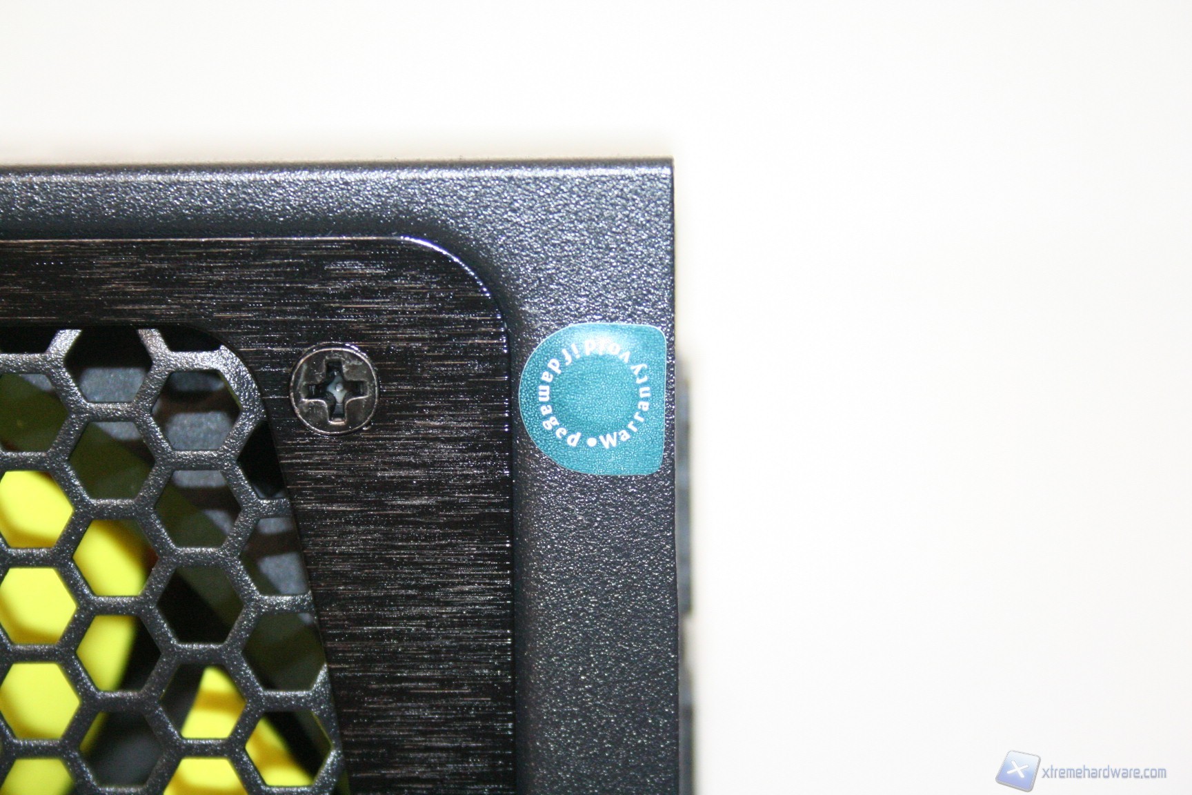 Lateralmente, in alto, c’è uno sticker che segnala la perdita della garanzia della casa produttrice qualora dovesse essere rimosso o forato, per permettere lo smontaggio della scocca, cosa presente nella quasi totalità degli alimentatori attualmente in commercio.